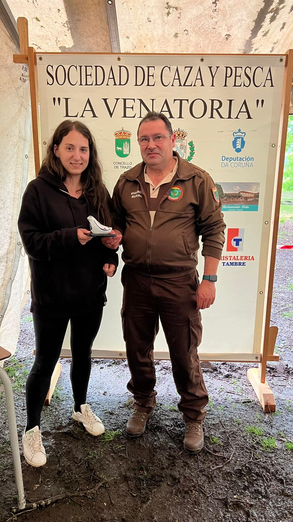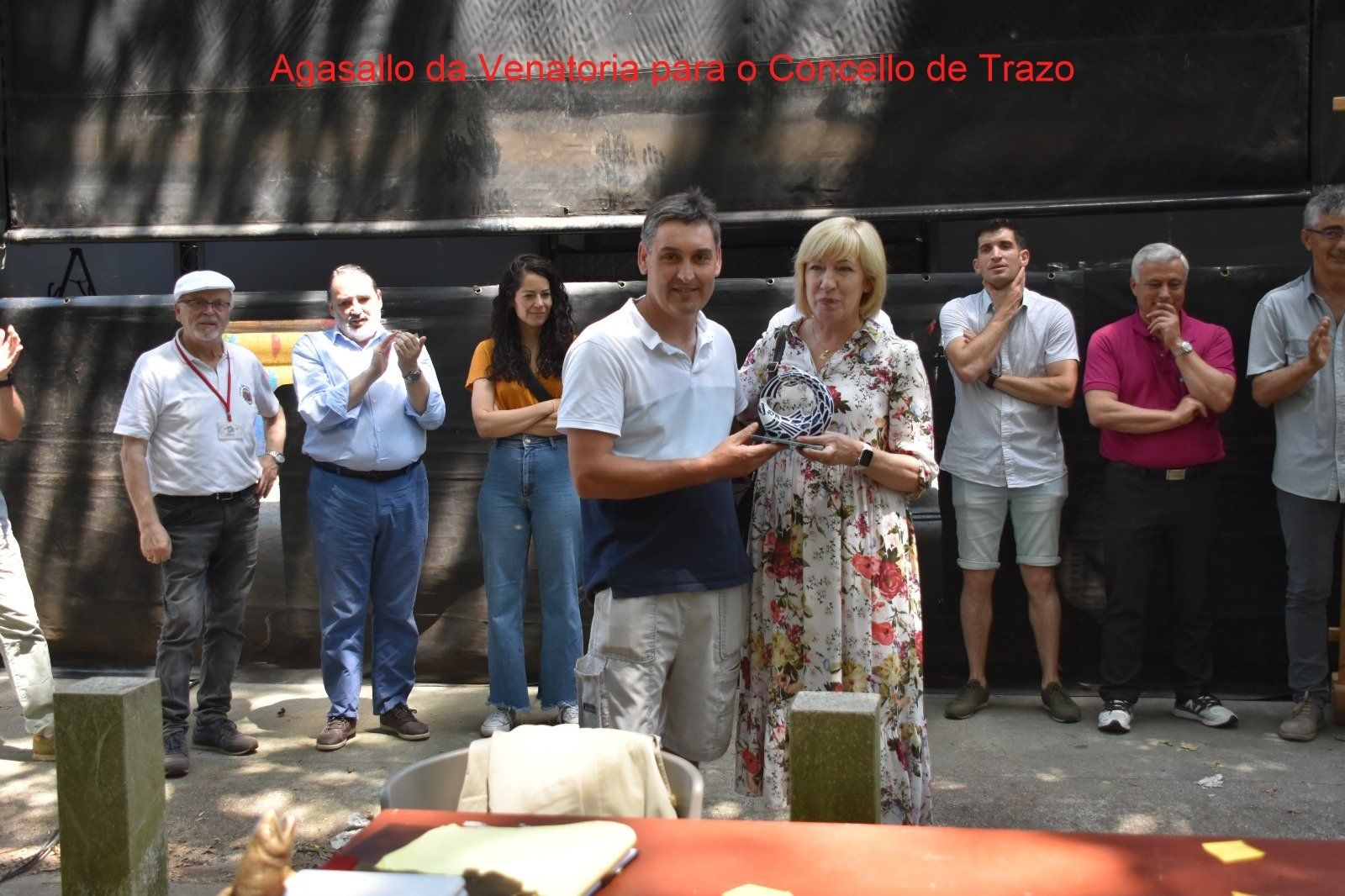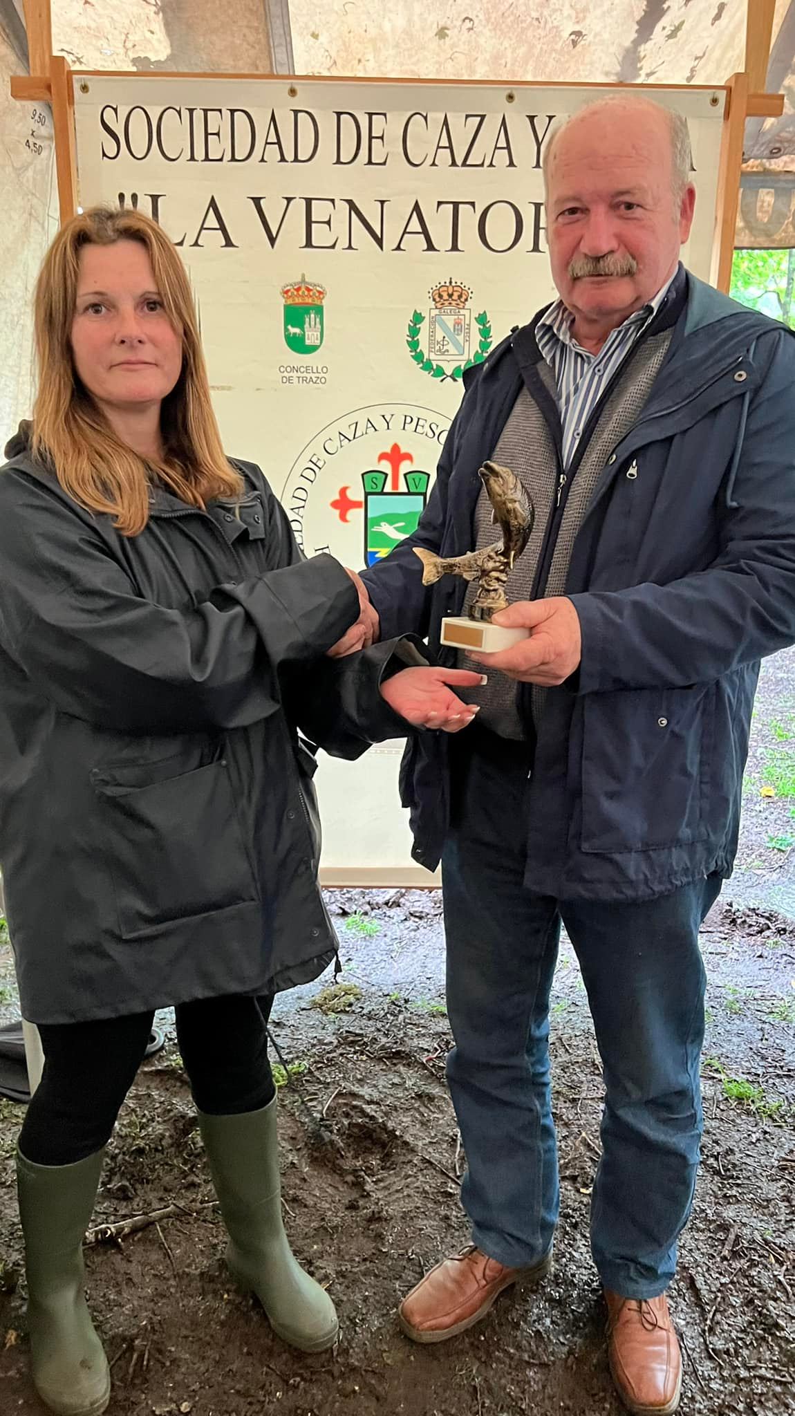 Nesta edición a Venatoria, que xa vai polo seu 90 aniversario, entregou aos concellos de Trazo e Santiago sendas figuras conmemorativas de cerámica de Sargadelos.