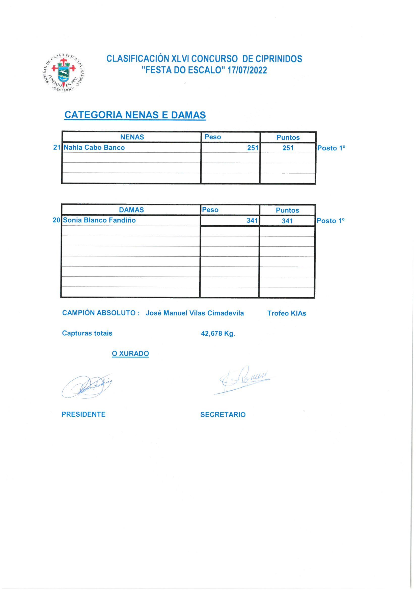 Equipo Ribadavia: 2º Puesto Peso: 4.674 gr.