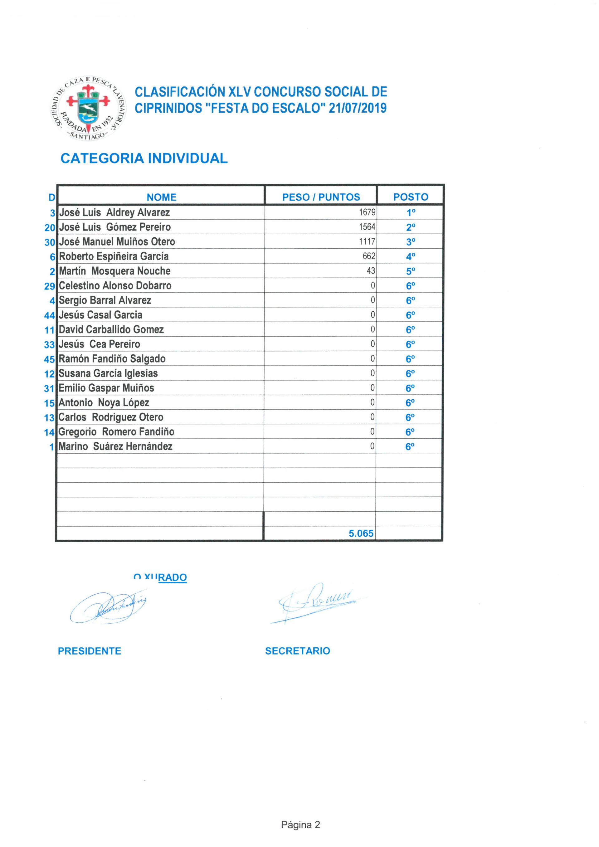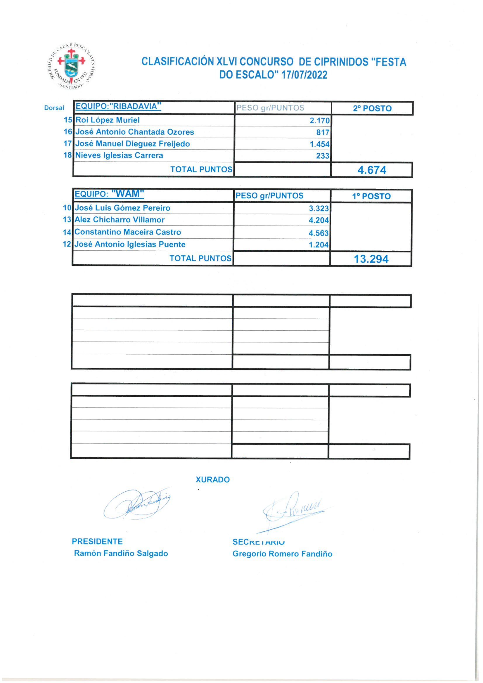 Equipo Ribadavia: 2º Posto Peso: 4.674 gr.