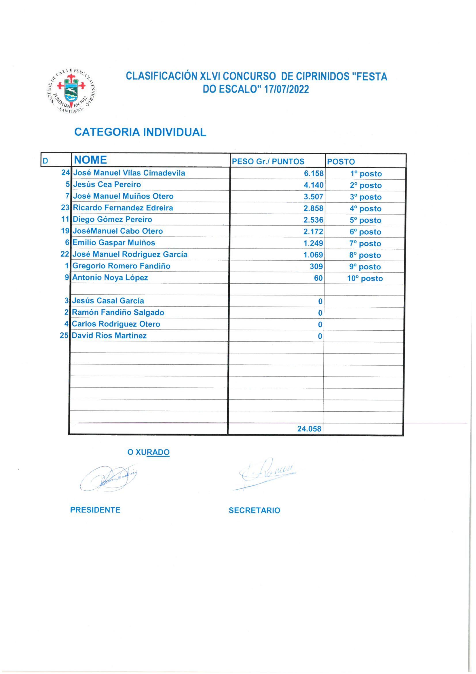 Jesús Cea Pereiro: 2º Puesto categoría Individual con 4.140 gr.