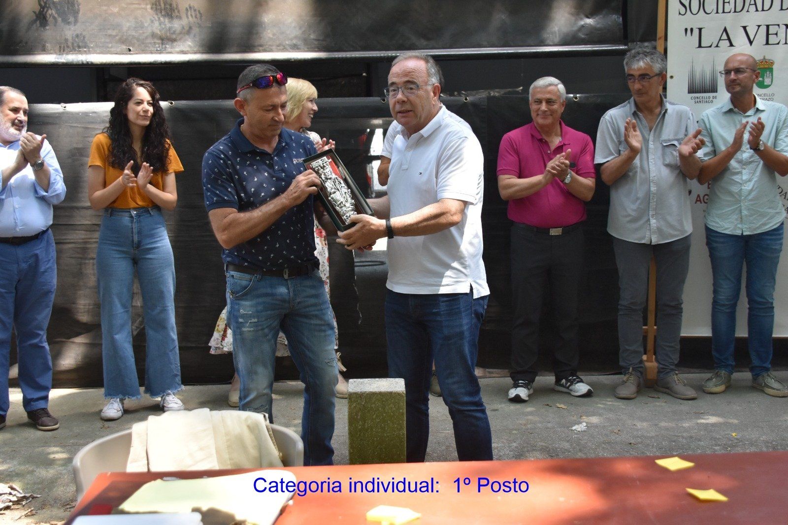 Tamén en lembranza de D. Jesús Cea Seoane, ex presidente da entidade e gran valedor que foi da Festa do Escalo, se lle entregou un obsequio ao seu fillo Suso Cea