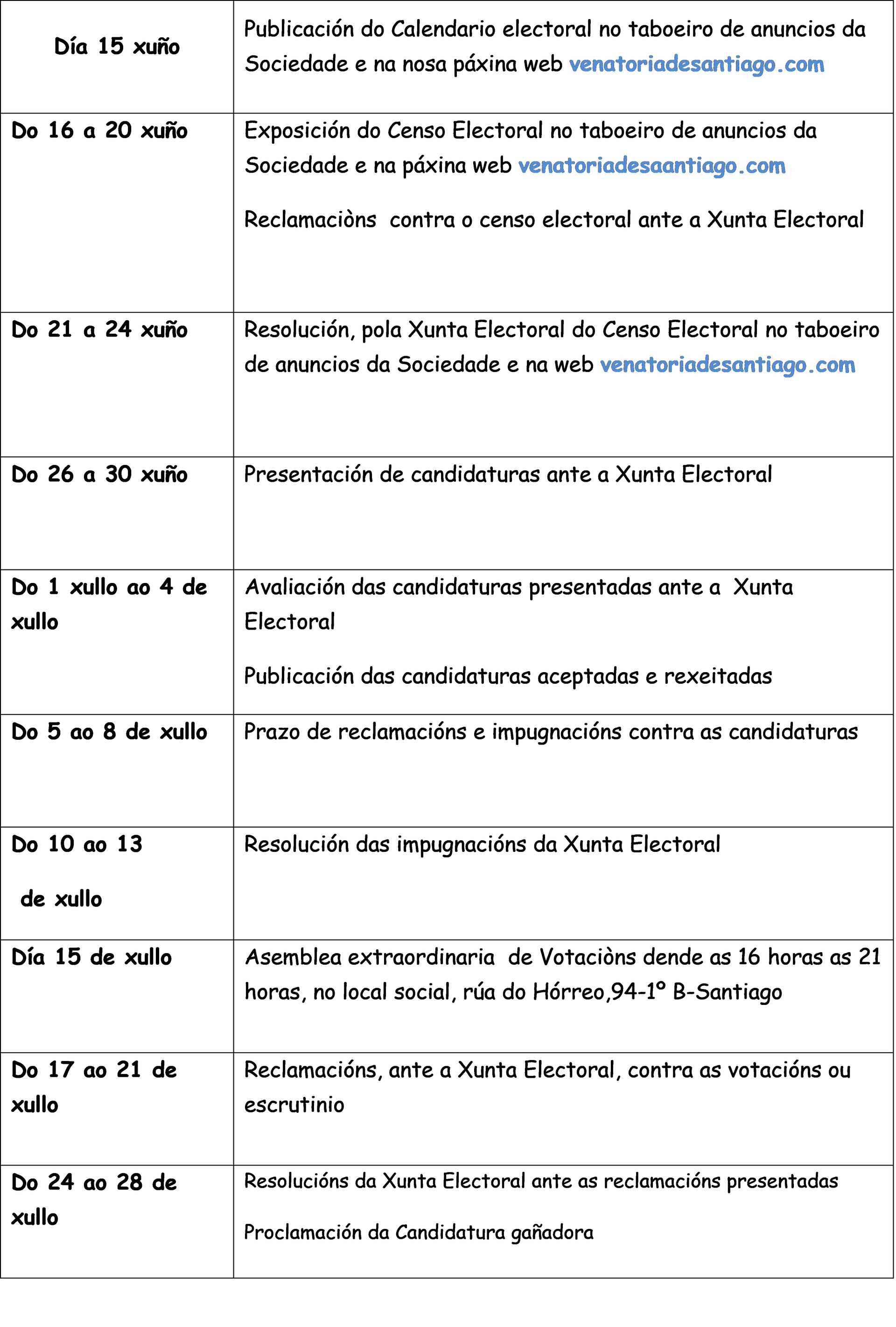 CONVOCATORIA DE ELECCIÓNS A PRESIDENCIA E XUNTA DIRECTIVA DA SOCIEDADE DE CAZA E PESCA LA VENATORIA DE SANTIAGO.
